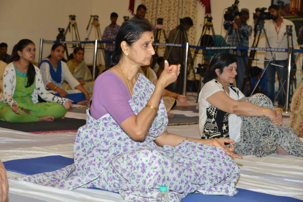 Governor of Telangana and Andhra Pradesh E.S.L. Narasimhan taking the lead in organising the first International Yoga Day celebrations at Raj Bhavan in Hyderabad on Sunday.