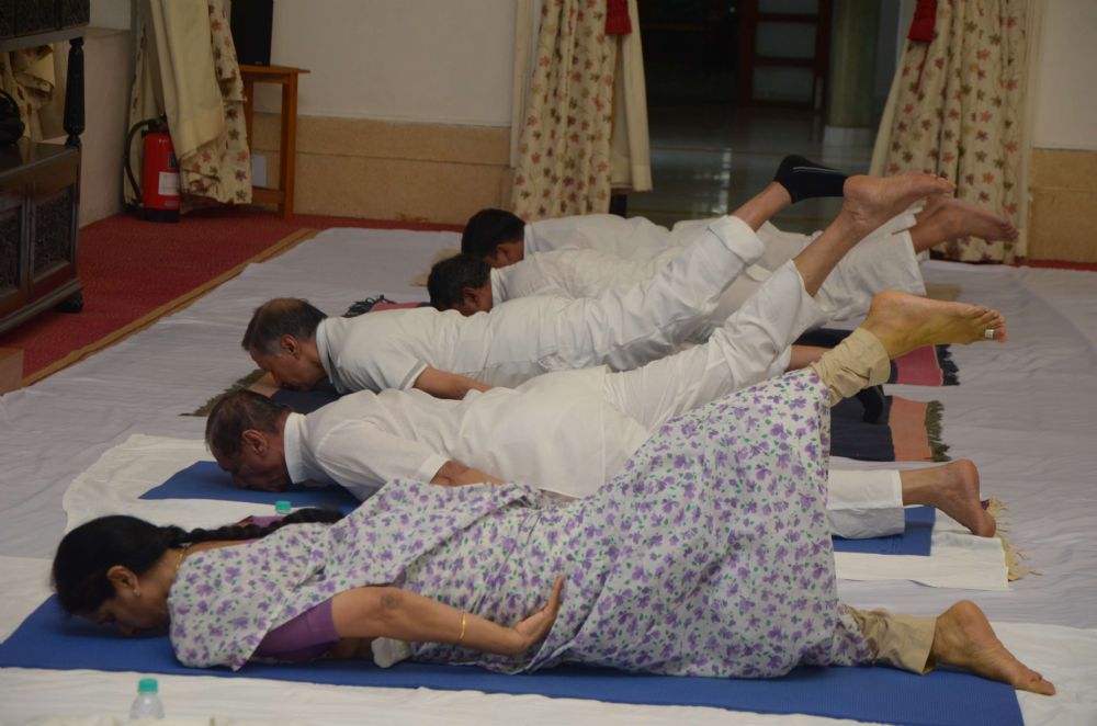 Governor of Telangana and Andhra Pradesh E.S.L. Narasimhan taking the lead in organising the first International Yoga Day celebrations at Raj Bhavan in Hyderabad on Sunday.