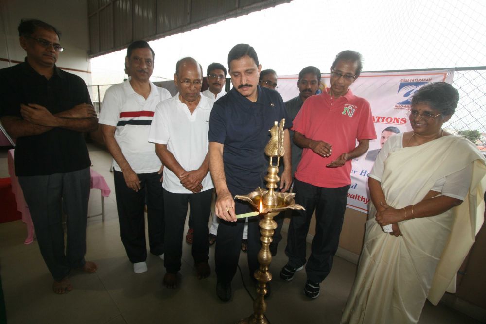 The first International Yoga Day celebrations got off to a rousing start in Hyderabad on Sunday. Central Ministers Sujana Chowdary, Bandaru Datthathreya, M Venkaiah Naidu participated in Yoga Day Celebrations.