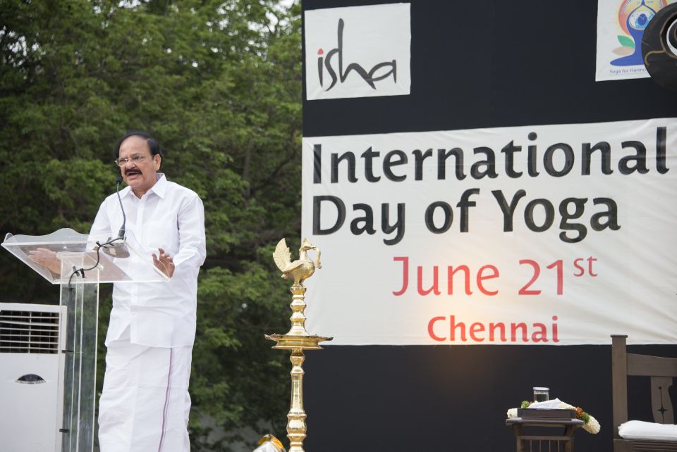 The first International Yoga Day celebrations got off to a rousing start in Hyderabad on Sunday. Central Ministers Sujana Chowdary, Bandaru Datthathreya, M Venkaiah Naidu participated in Yoga Day Celebrations.