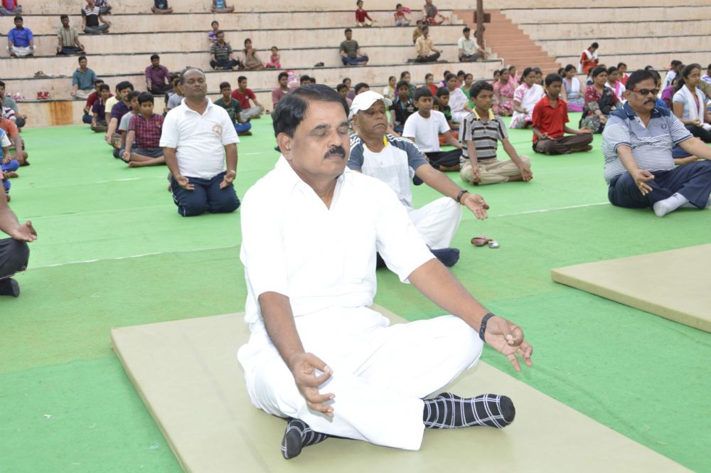 Andhra Pradesh Ministers and Collectors participated in the first International Yoga Day celebrations in Anantapuram on Sunday.