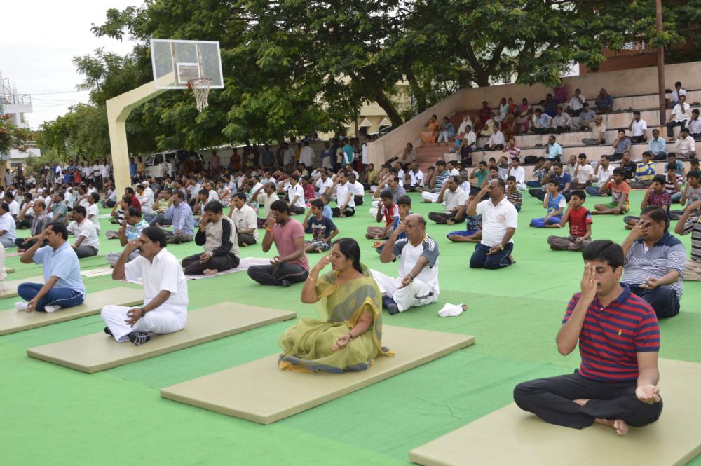Andhra Pradesh Ministers and Collectors participated in the first International Yoga Day celebrations in Anantapuram on Sunday.