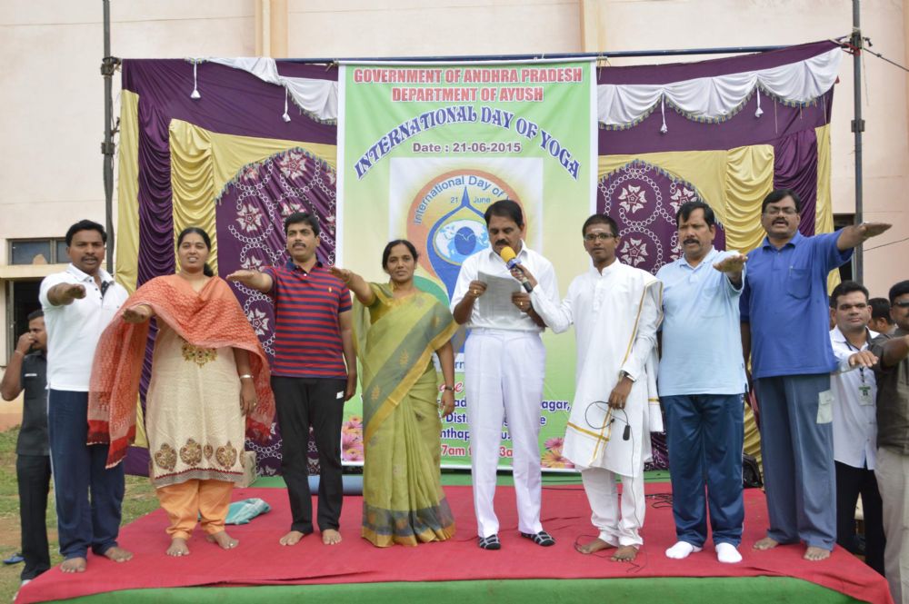 Andhra Pradesh Ministers and Collectors participated in the first International Yoga Day celebrations in Anantapuram on Sunday.