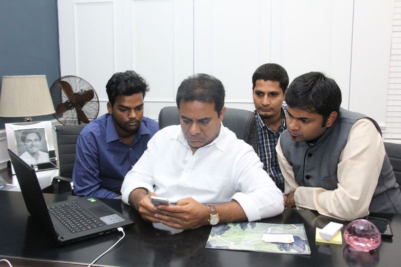 Telangana IT Minister K T Rama Rao interacting with the citizens in Twitter Live program on May 26, 2015.