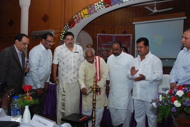 Minister of State (Independent Charge) for Labour & Employment Bandaru Dattatreya lighting lamp at Regional Labour Ministers Conference (Southern Region) held at Hyderabad on 27th June 2015.