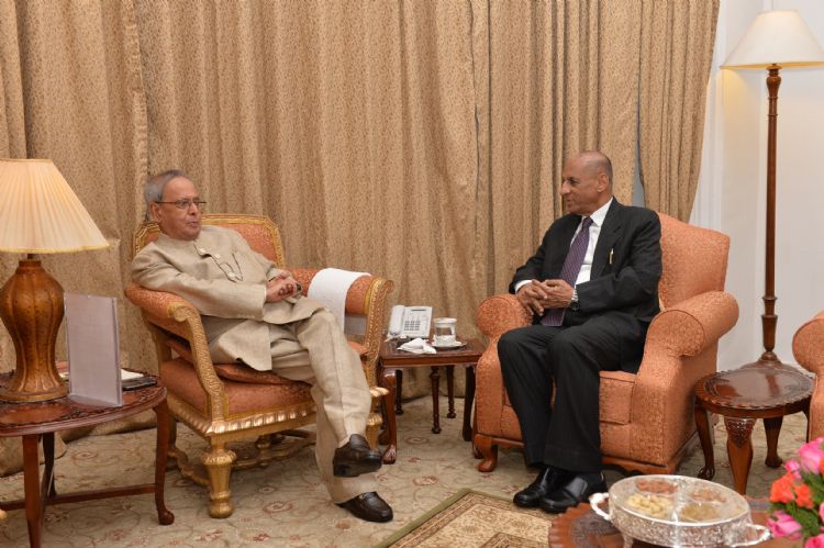 ESL Narasimham, Governor of Telangana called on Pranab Mukharjee, President of India at Rashtrapathi Nilayam in Hyderabad on June 30, 2015.