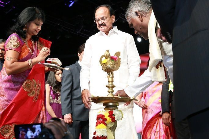 Union Minister Venkaiah Naidu, Supreme Court Judge Justice NV Ramana, TANA President Mohan Nannapaneni, conference Convenor Gangadhar Nadella inaugurated the 20th TANA convention at Cobo hall, Detroit.