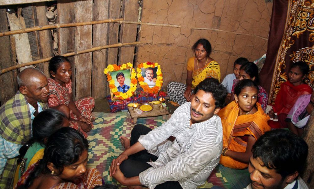 YSRCP Chief YS Jagan interacting with the banana farmers and consoling family members of road accident in Surampalem of East Godavari District on July 4th, 2015.
