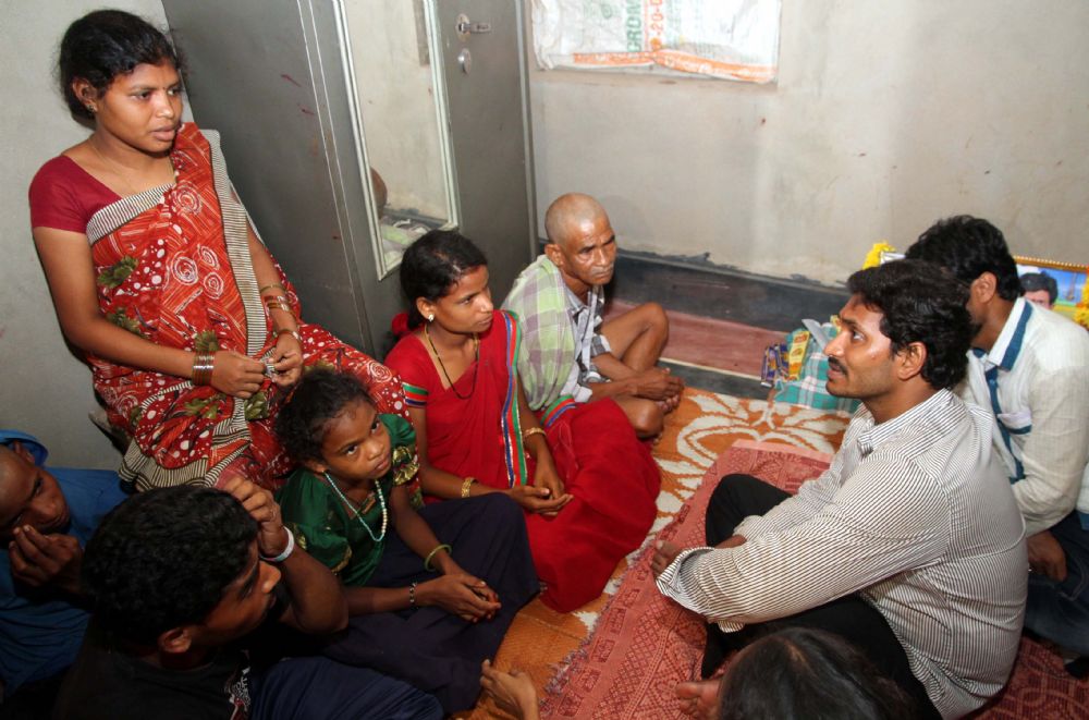 YSRCP Chief YS Jagan interacting with the banana farmers and consoling family members of road accident in Surampalem of East Godavari District on July 4th, 2015.