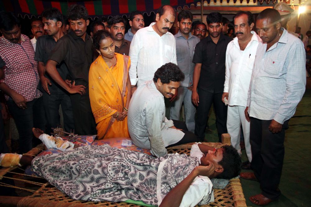 YSRCP Chief YS Jagan interacting with the banana farmers and consoling family members of road accident in Surampalem of East Godavari District on July 4th, 2015.