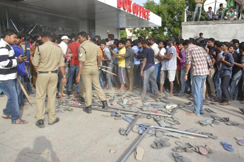 The much awaited film Baahubali released today and as expected the film is getting huge response from audience. Due to heavy rush stempede at Chintalakunta Vijalakshmi talkes, Hyderabad.
