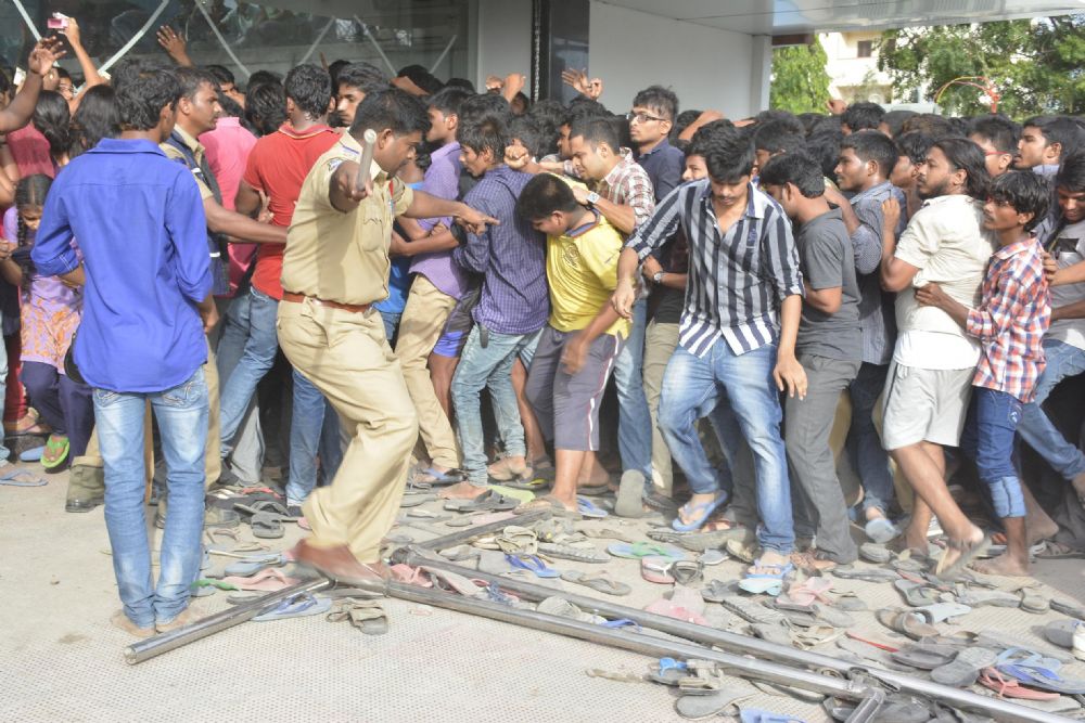 The much awaited film Baahubali released today and as expected the film is getting huge response from audience. Due to heavy rush stempede at Chintalakunta Vijalakshmi talkes, Hyderabad.