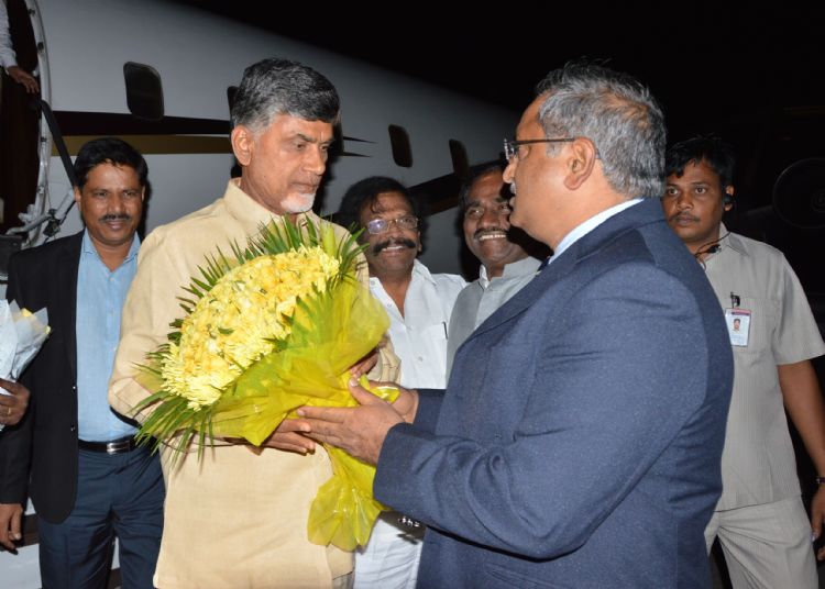 Sidha Raghavara Rao,Minister for Transport, Ravela Kishore Babu Minister for Social Welfare & Additional DGP of Intelligence Met Nara Chandrababu Naidu Chief Minister of Andhra Pradesh at Begumpet Air Port on 10th July 2015.