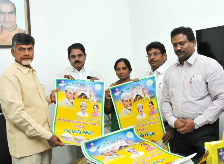 N. Chandrababu Naidu, Chief Minister of Andhra Pradesh releasing a poster of "Chandranna Ramzan Tohfa" to Muslims on the occassion of Ramzan festival at his residence on 12th July 2015.