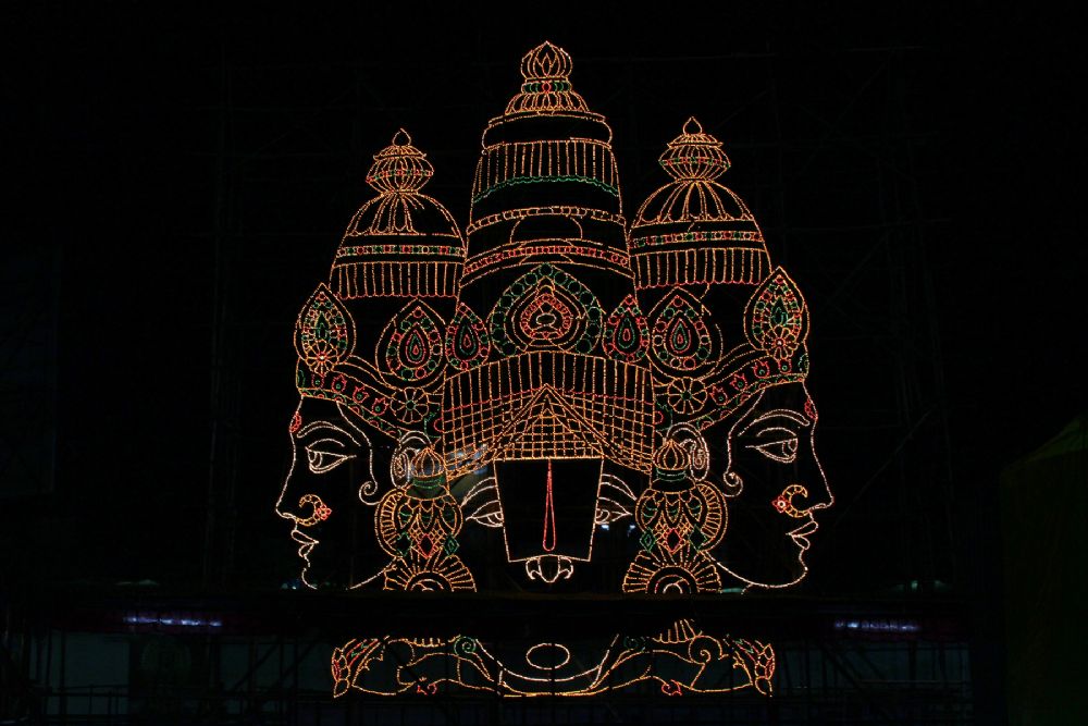 The sky in the Municipal Ground premises in Rajamundry attained a new look during the nights out of the illuminations emanated from the huge electrical cut outs set by electrical wing of TTD for the occasion.