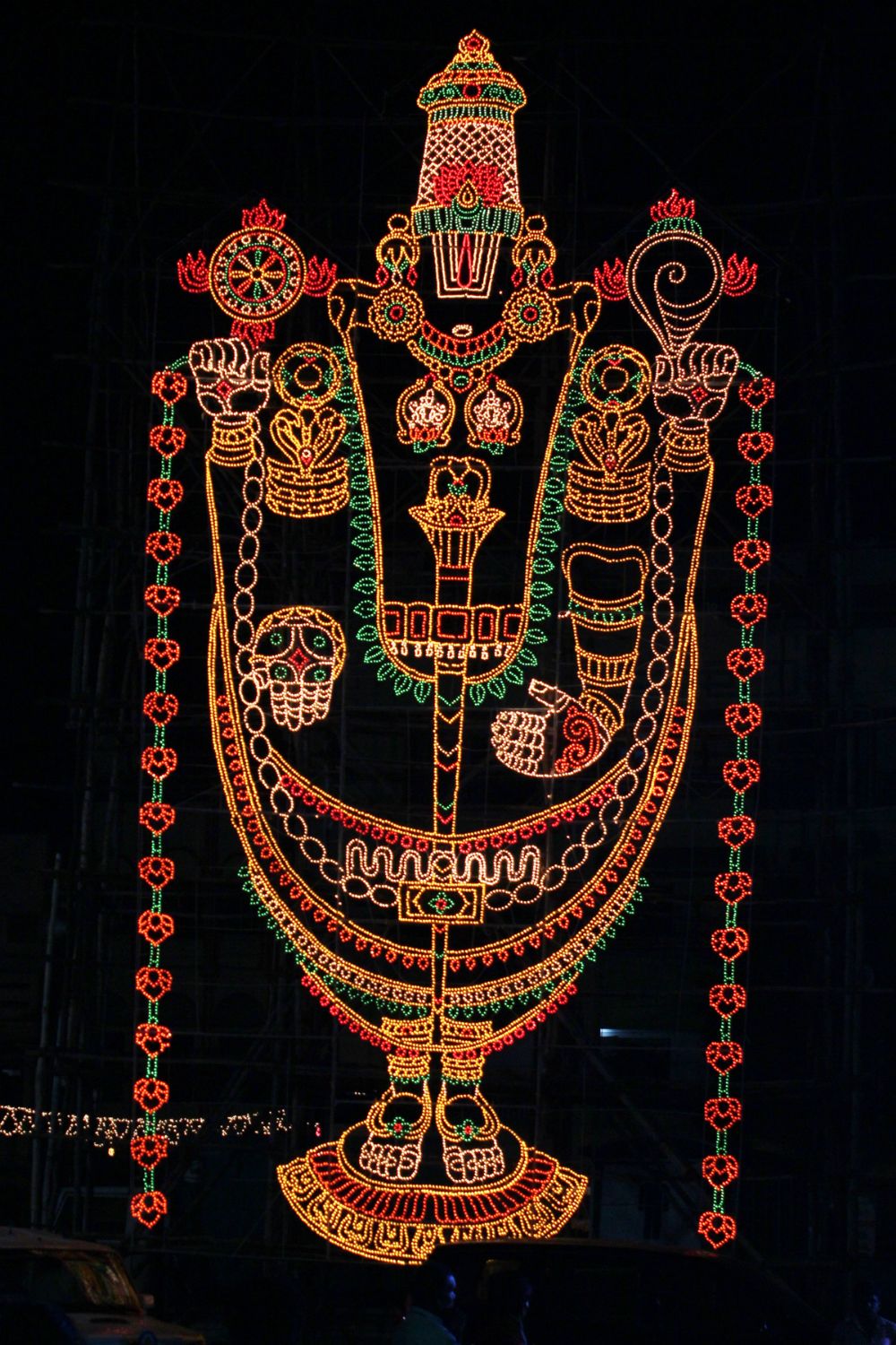The sky in the Municipal Ground premises in Rajamundry attained a new look during the nights out of the illuminations emanated from the huge electrical cut outs set by electrical wing of TTD for the occasion.