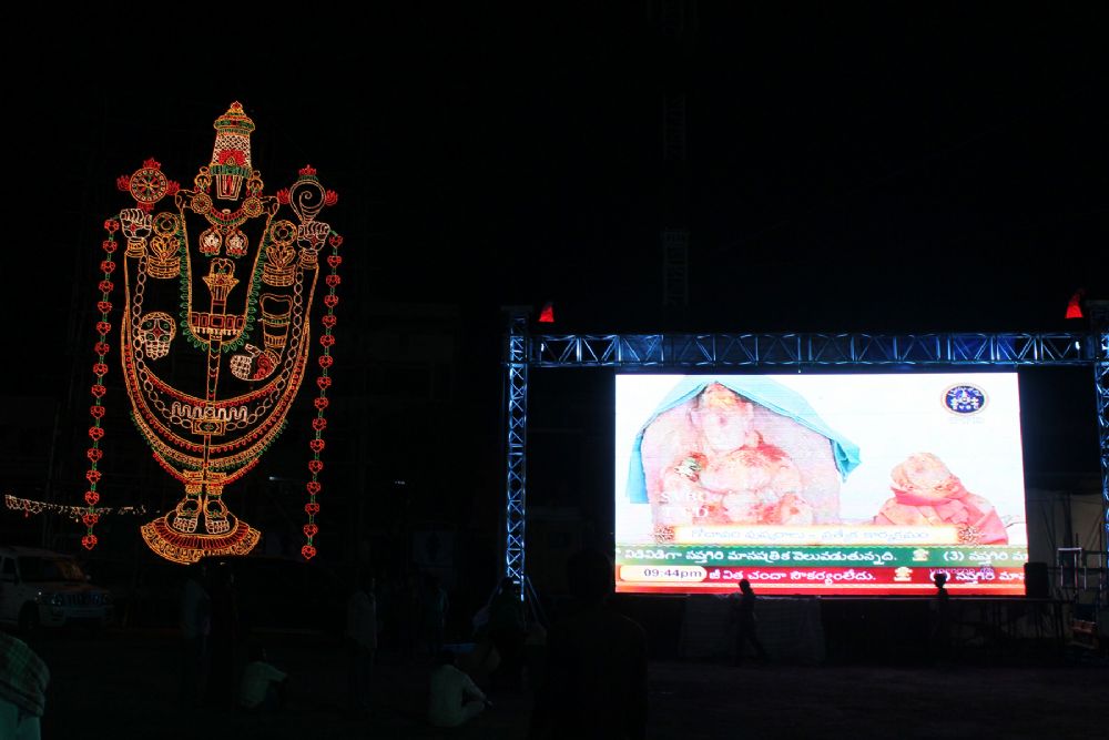The sky in the Municipal Ground premises in Rajamundry attained a new look during the nights out of the illuminations emanated from the huge electrical cut outs set by electrical wing of TTD for the occasion.