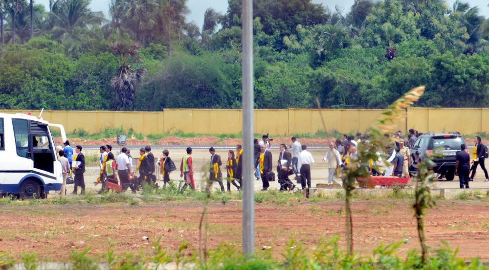 Singapore Second Minister for Trade and Industry S. Iswaran and his team visited Rajahmundry and handling over the Amaravathi Master Plan to CM Chandrabau Naidu on Monday.