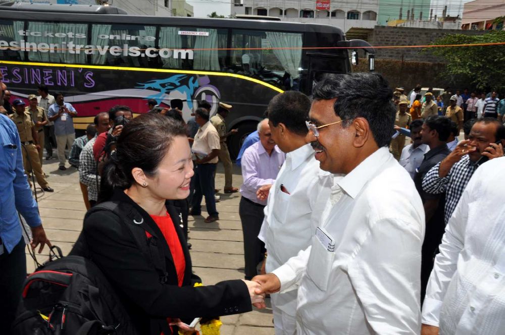 Singapore Second Minister for Trade and Industry S. Iswaran and his team visited Rajahmundry and handling over the Amaravathi Master Plan to CM Chandrabau Naidu on Monday.