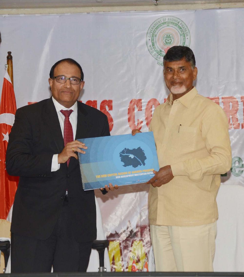 Singapore Second Minister for Trade and Industry S. Iswaran and his team visited Rajahmundry and handling over the Amaravathi Master Plan to CM Chandrabau Naidu on Monday.