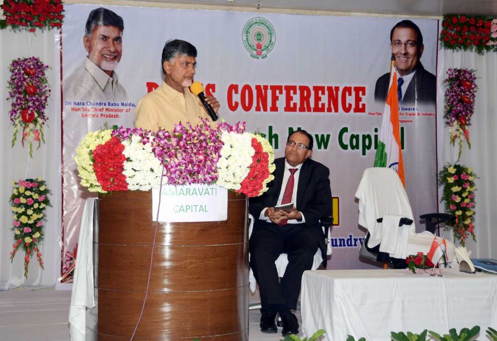 Singapore Second Minister for Trade and Industry S. Iswaran and his team visited Rajahmundry and handling over the Amaravathi Master Plan to CM Chandrabau Naidu on Monday.