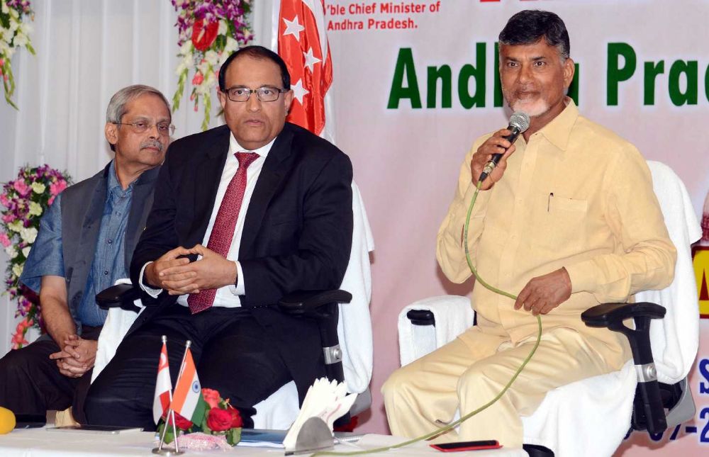Singapore Second Minister for Trade and Industry S. Iswaran and his team visited Rajahmundry and handling over the Amaravathi Master Plan to CM Chandrabau Naidu on Monday.