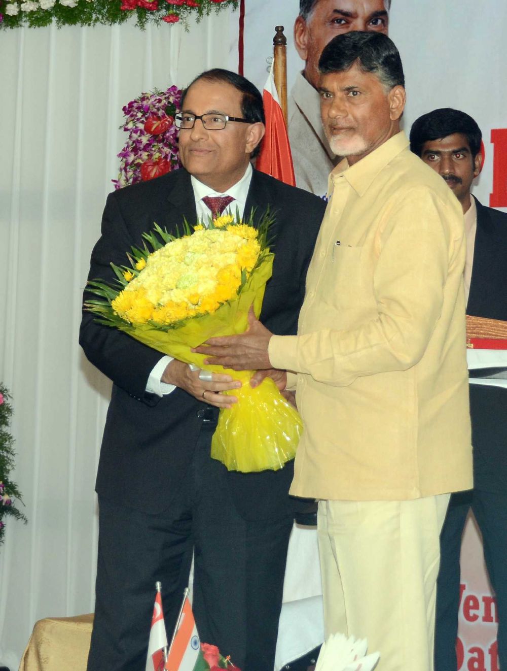 Singapore Second Minister for Trade and Industry S. Iswaran and his team visited Rajahmundry and handling over the Amaravathi Master Plan to CM Chandrabau Naidu on Monday.