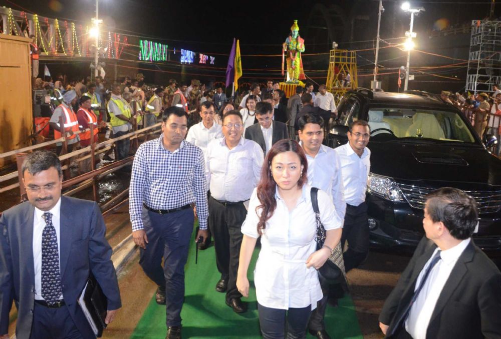 The Singapore team, headed by Second Minister S Iswaran accompanied by Chief Minister N Chandrababu Naidu, witnessed the sacred Godavari Harathi in Rajahmundry Pushkar Ghat on Monday.