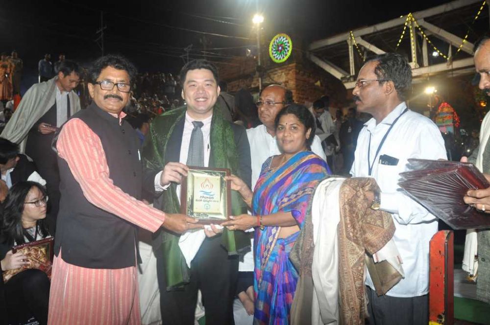 Chief Minister Chandrababu Naidu and Singapore Minster Iswaran participated in Godavari Harathi on Monday. Rajahmudry MP Murali Mohan felicitating the Singpore Team on this occassion.