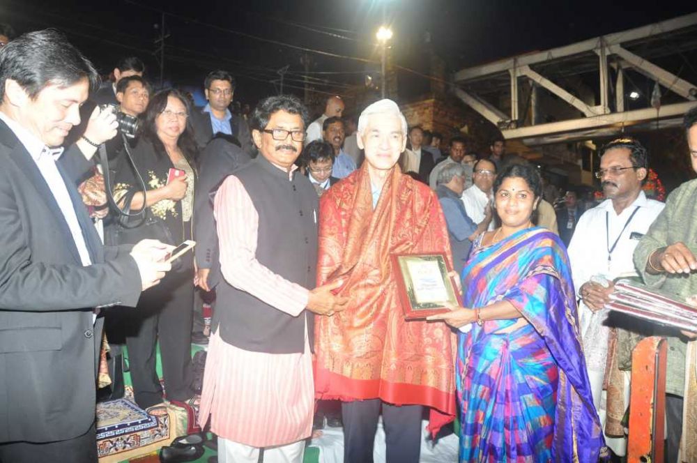 Chief Minister Chandrababu Naidu and Singapore Minster Iswaran participated in Godavari Harathi on Monday. Rajahmudry MP Murali Mohan felicitating the Singpore Team on this occassion.