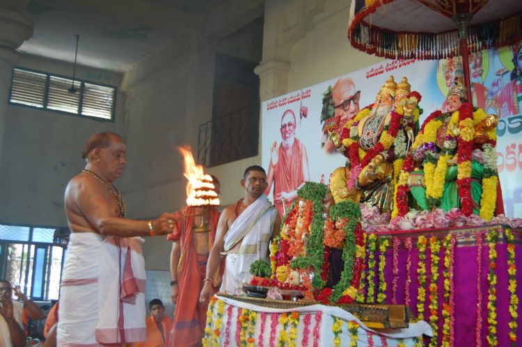 Vedic priest Matampalli Dakishnamurthy performing three day massive Hari, Hara, Brahma Yagnam in Ongole TTD Kalyana Mandapam. Swamy Vijayendra Saraswathi of Kanchi Kamakoti Peetam will take part in the "Purnahuti" on July 22nd 2015.
