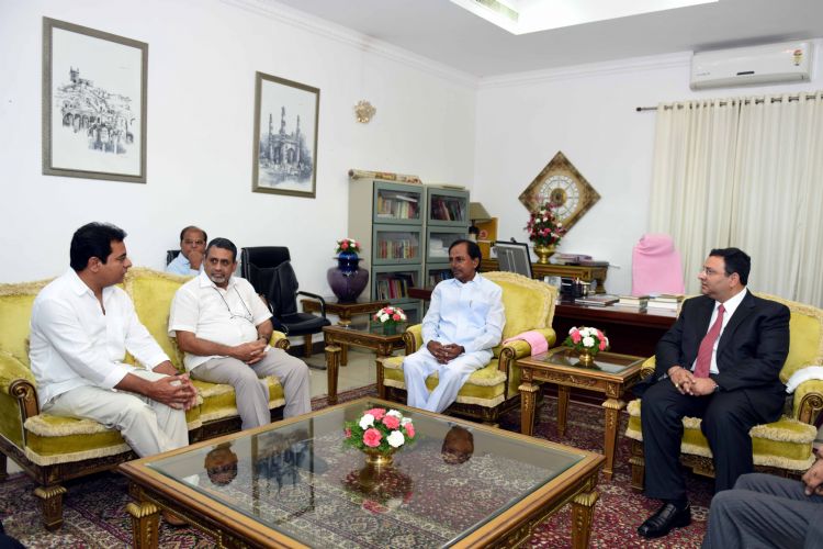 Cyrus Mistry, Chairman TATA Groups and officials called on Hon'ble Chief Minister K.Chandrasekhar Rao at CM Camp Office on 23rd July 2015.