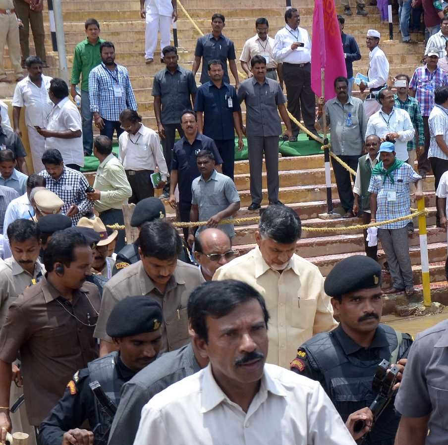 Andhra Pradesh Chief Minister Chandrababu Naidu visited ghats over boat in Rajahmundy on 24th July 2015.