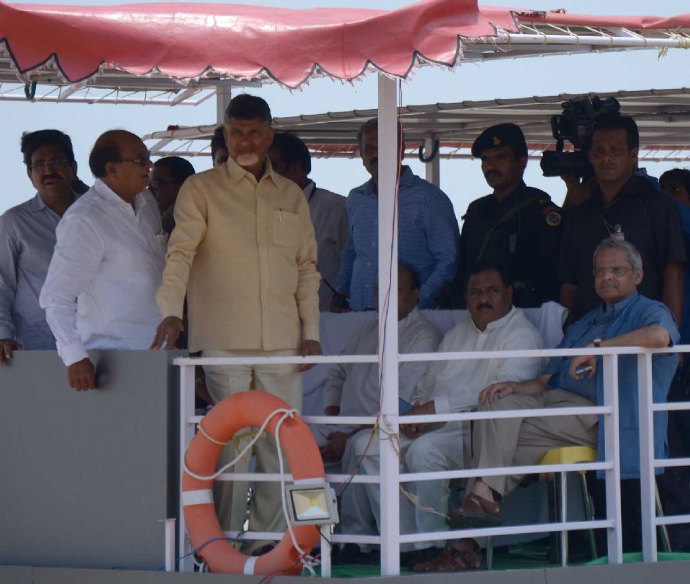 Andhra Pradesh Chief Minister Chandrababu Naidu visited ghats over boat in Rajahmundy on 24th July 2015.