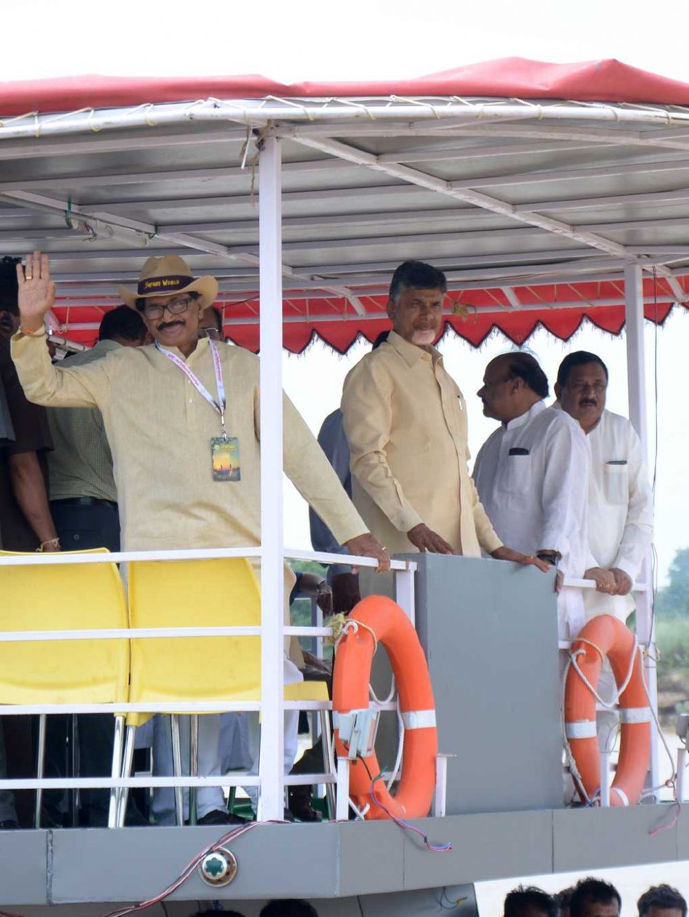 Andhra Pradesh Chief Minister Chandrababu Naidu visited ghats over boat in Rajahmundy on 24th July 2015.