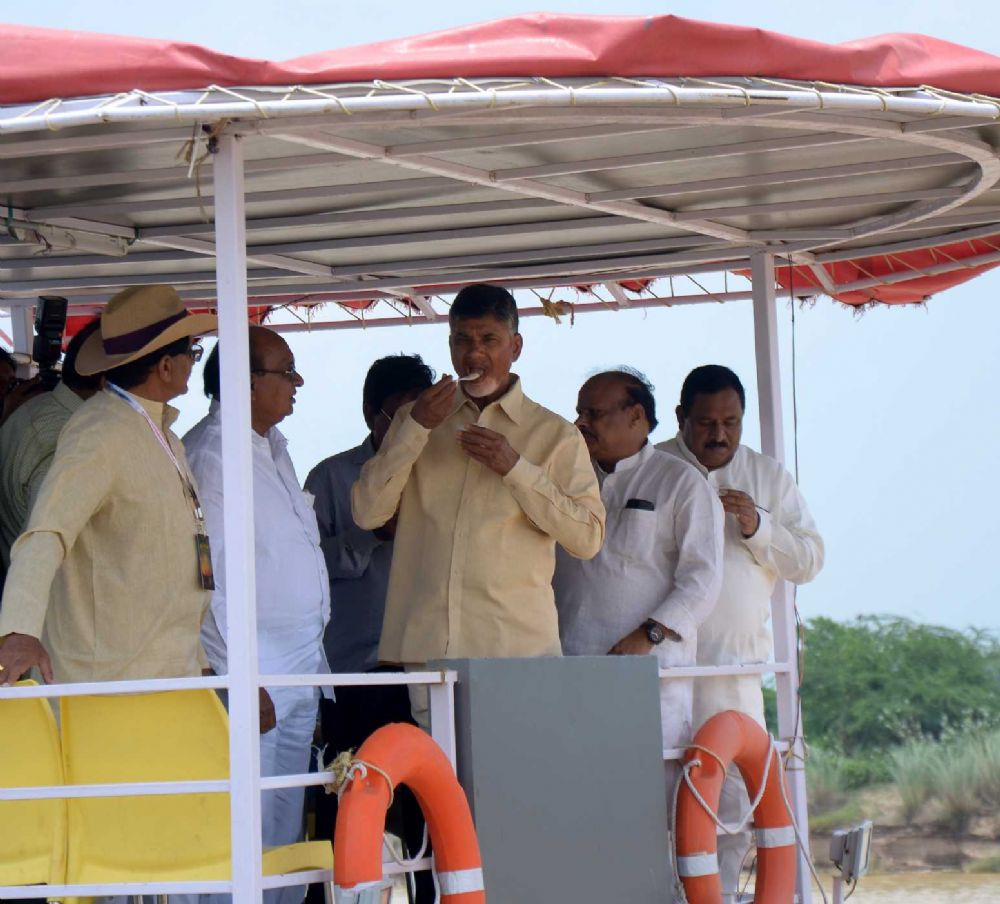 Andhra Pradesh Chief Minister Chandrababu Naidu visited ghats over boat in Rajahmundy on 24th July 2015.