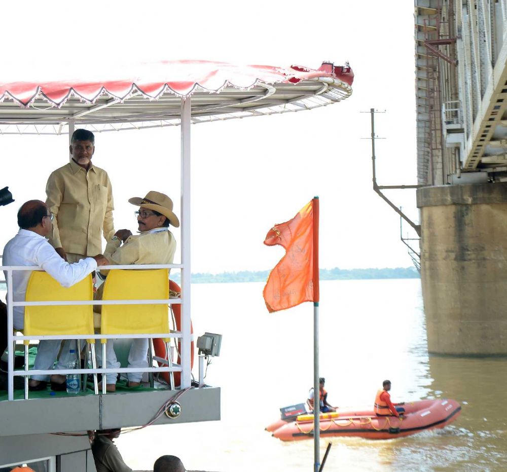 Andhra Pradesh Chief Minister Chandrababu Naidu visited ghats over boat in Rajahmundy on 24th July 2015.