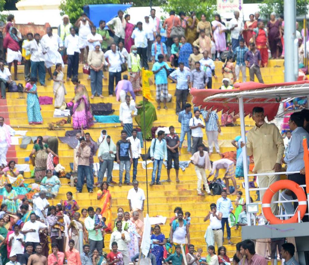 Andhra Pradesh Chief Minister Chandrababu Naidu visited ghats over boat in Rajahmundy on 24th July 2015.