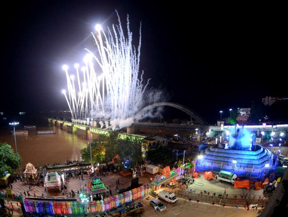 The Twelve Day Godavari Pushkarams ended in a colourful display of fireworks and laser show with thousands witnessing the grand event from the Rajahmundry Pushkar Ghat on Saturday Evening.