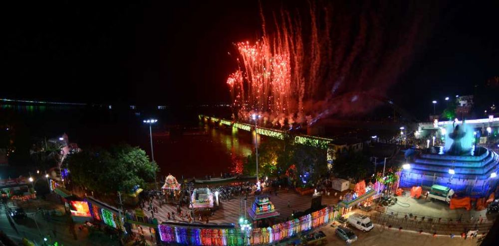 The Twelve Day Godavari Pushkarams ended in a colourful display of fireworks and laser show with thousands witnessing the grand event from the Rajahmundry Pushkar Ghat on Saturday Evening.