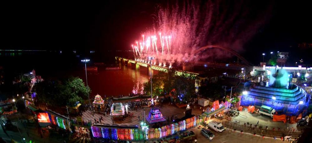 The Twelve Day Godavari Pushkarams ended in a colourful display of fireworks and laser show with thousands witnessing the grand event from the Rajahmundry Pushkar Ghat on Saturday Evening.