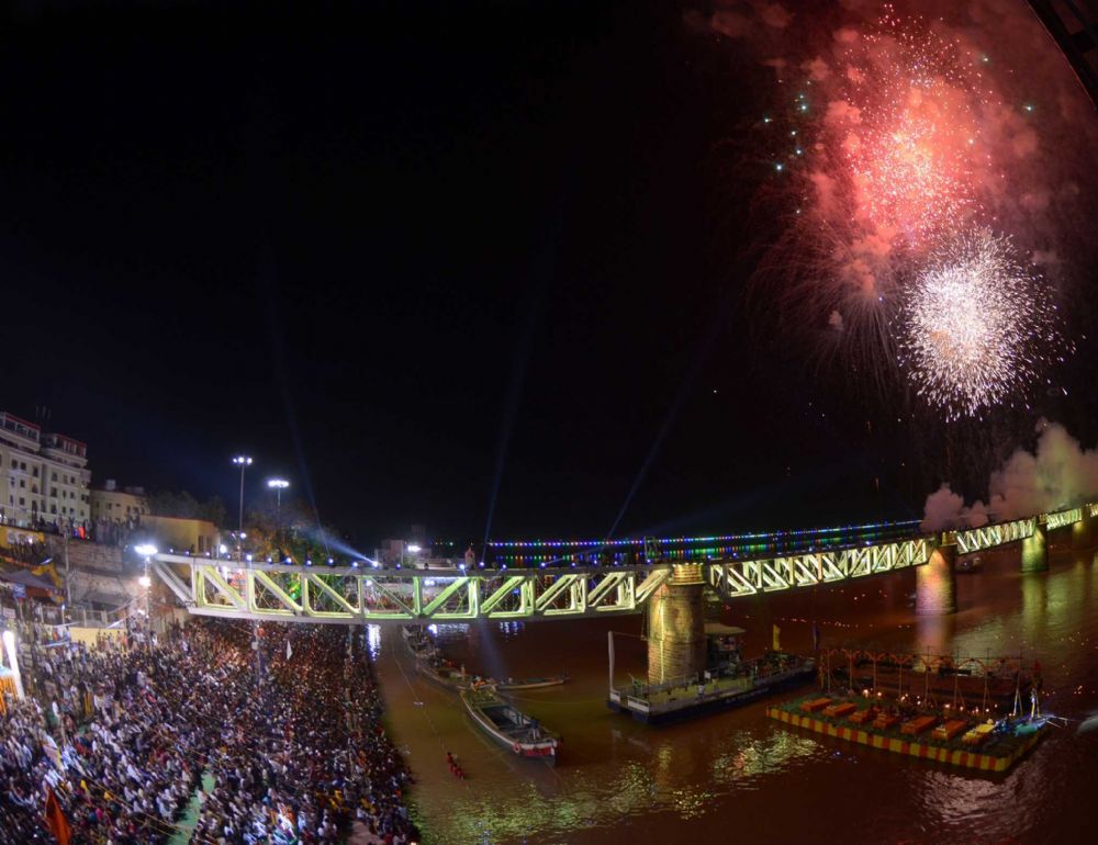The Twelve Day Godavari Pushkarams ended in a colourful display of fireworks and laser show with thousands witnessing the grand event from the Rajahmundry Pushkar Ghat on Saturday Evening.
