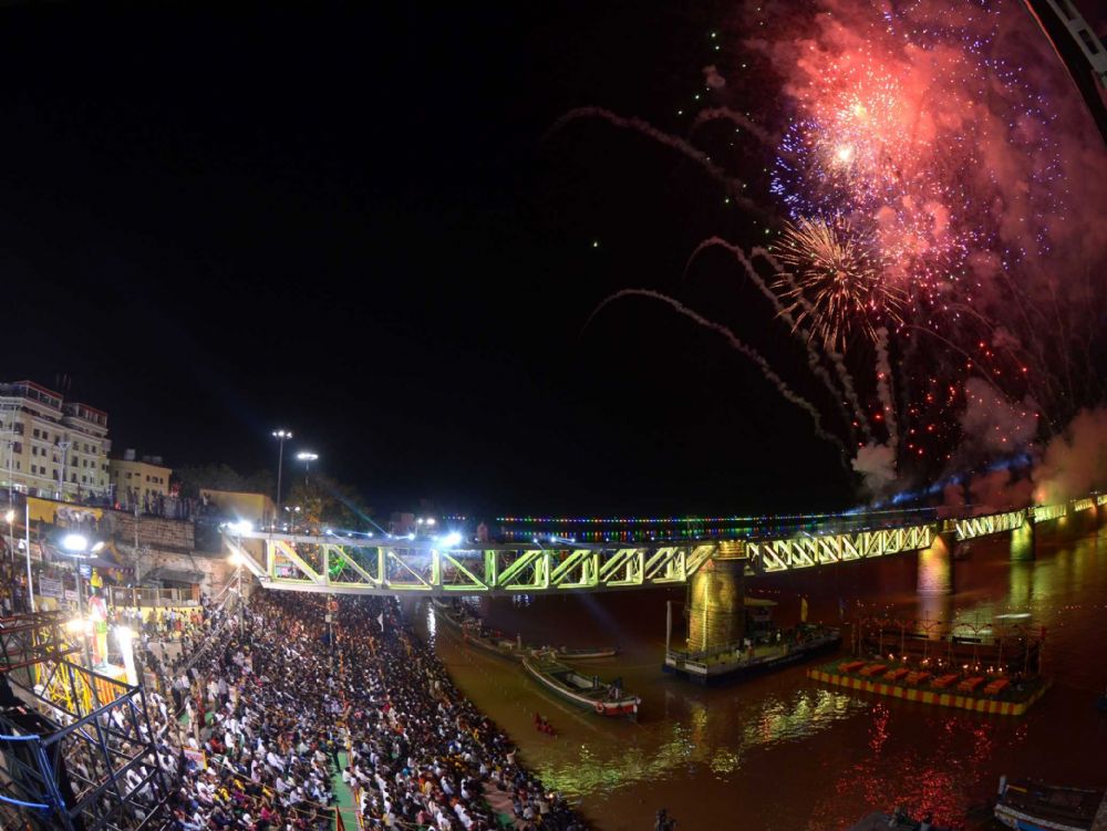 The Twelve Day Godavari Pushkarams ended in a colourful display of fireworks and laser show with thousands witnessing the grand event from the Rajahmundry Pushkar Ghat on Saturday Evening.