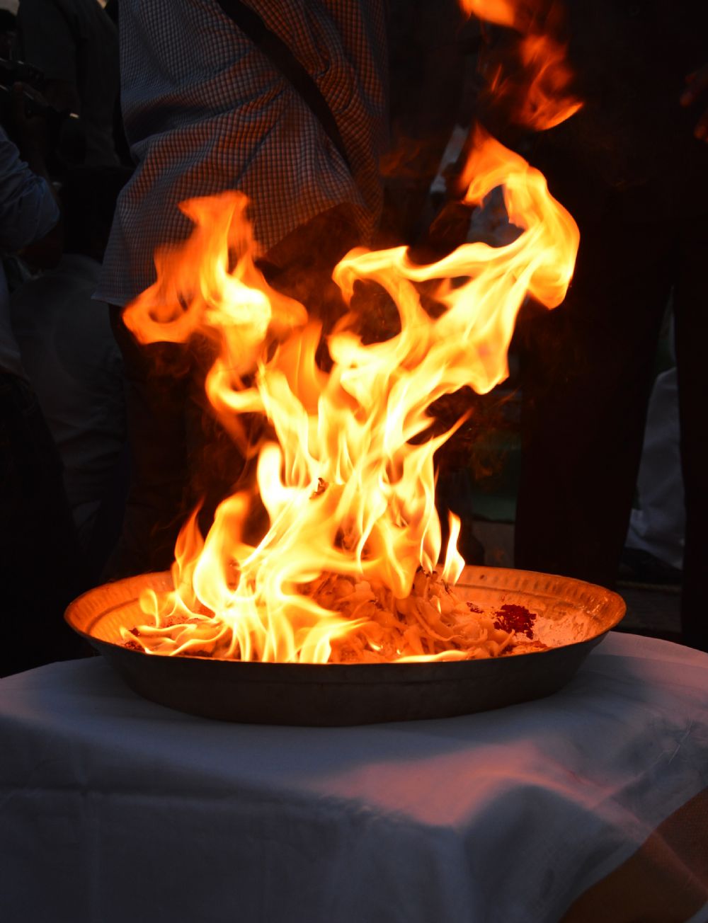 Nitya Harathi performing by Chandrababu Naidu at Godavari Pushkar Ghat on the last day of the 12 day Maha Pushkaram in Rajahmundry on Saturday.