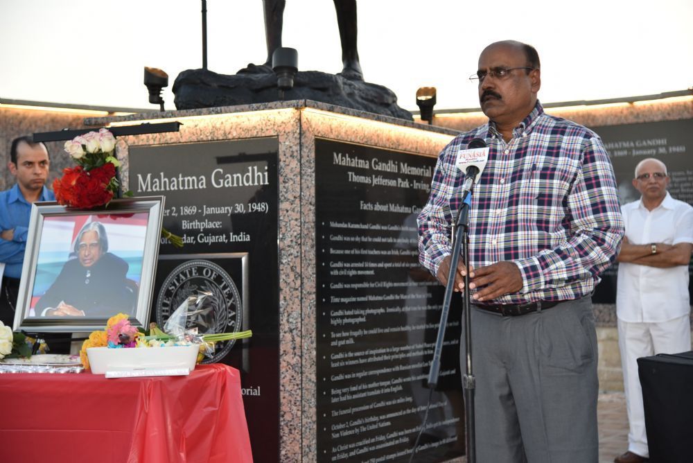 Mahatma Gandhi Memorial of North Texas (MGMNT) organized a candle light vigil condolence meeting to pay tribute to Bharata Ratna, Dr. APJ Abdul Kalam at Mahatma Gandhi Memorial Plaza in Irving. More than 250 people from all walks of life gathered to pay a rich floral tribute to Dr. Kalam.