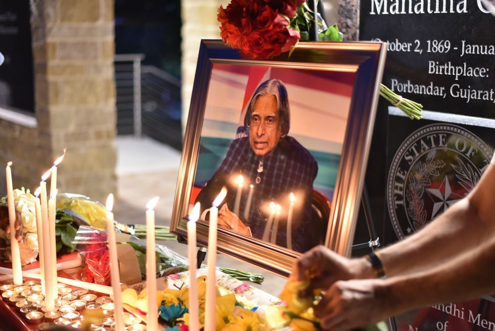 Mahatma Gandhi Memorial of North Texas (MGMNT) organized a candle light vigil condolence meeting to pay tribute to Bharata Ratna, Dr. APJ Abdul Kalam at Mahatma Gandhi Memorial Plaza in Irving. More than 250 people from all walks of life gathered to pay a rich floral tribute to Dr. Kalam.