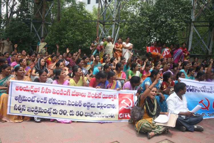 Telangana Anganwadi workers staging dharna demanding to clear the pending wages on 3rd July 2015.