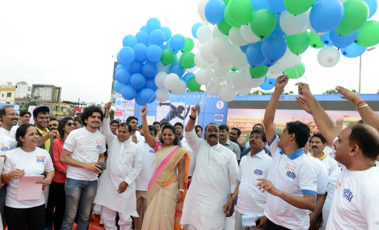 Chief guest N.Narasimah Reddy, Home Minister of Telangana flagoff 5K Walk with Kavita M.P, E.Ramchandar Reddy MLA at peoples Plaza on 9th August 2015.