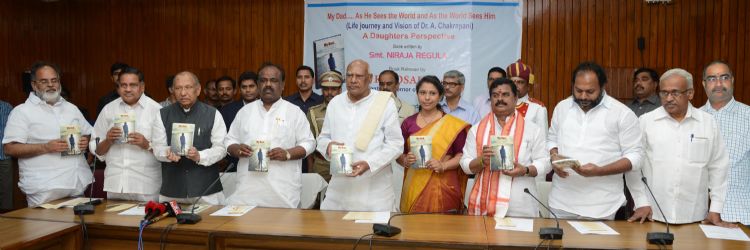 Dr K. Rosaiah Governor of Tamilnadu releasing book titled MY DAD of Dr K Chakrapani Honble Chairman of AP Legislative Council on at Assembly in Hyderabad 9th August 2015.