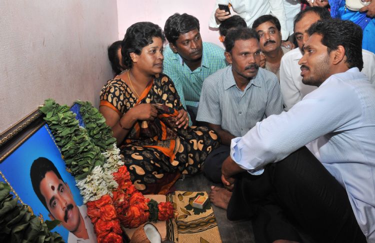 YS Jagan Mohan Reddy consoling the family members of MuniKoti who committed suicide in Tirupati seeking special status to AP.